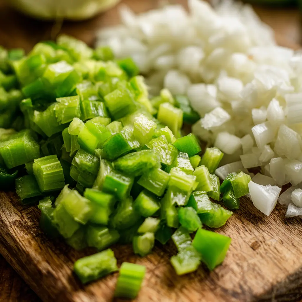 Just like French cuisine has its mirepoix, Louisiana cooking builds its flavor foundation on the “Holy Trinity”: diced onions, celery, and bell peppers. These three vegetables are sautéed until softened, forming the aromatic bedrock of nearly every gumbo.