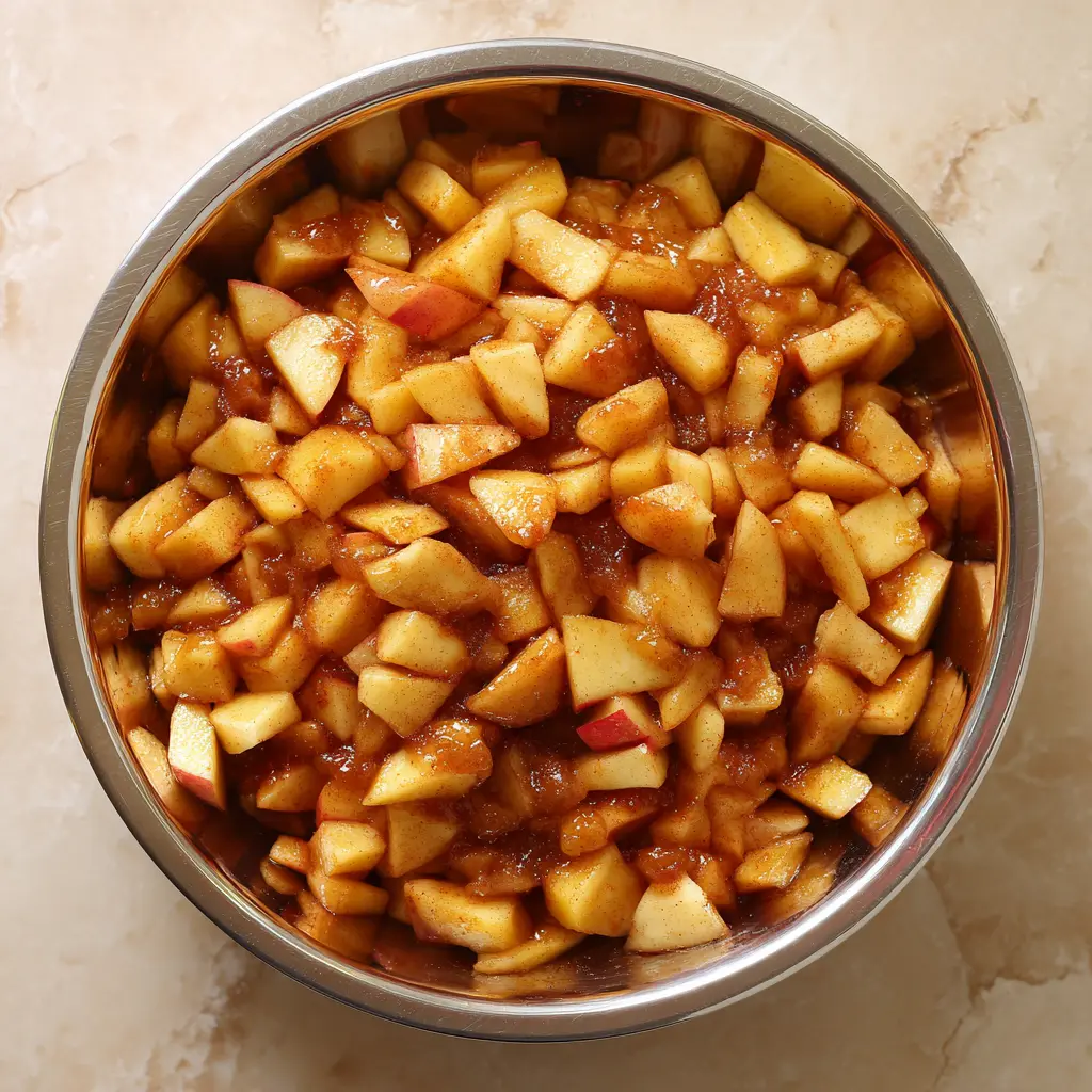 - Make Apple Filling: Toss apple slices with sugars, flour or cornstarch, spices, and lemon juice. Let sit 15–20 minutes to release juices.